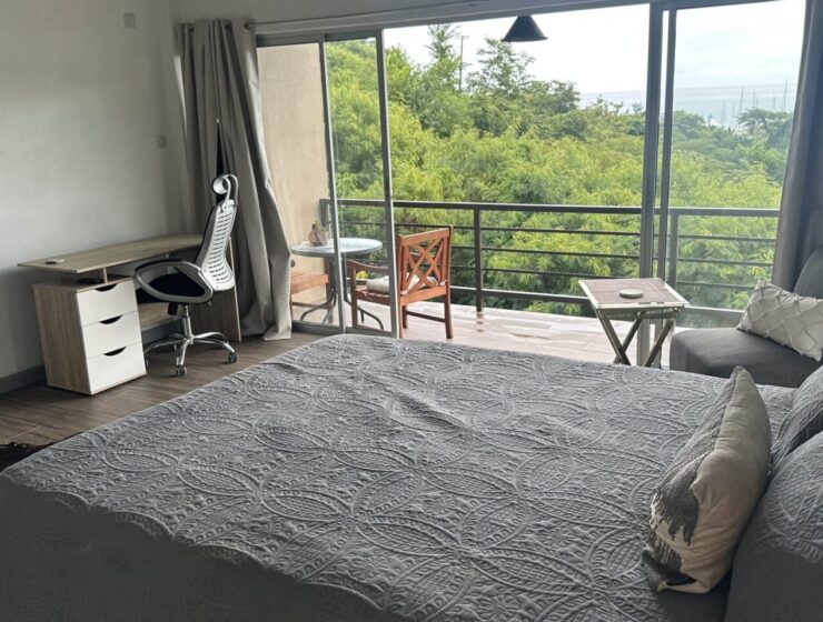 Stunning modern studio apartments with ocean views, elegant furniture, stainless steel appliances